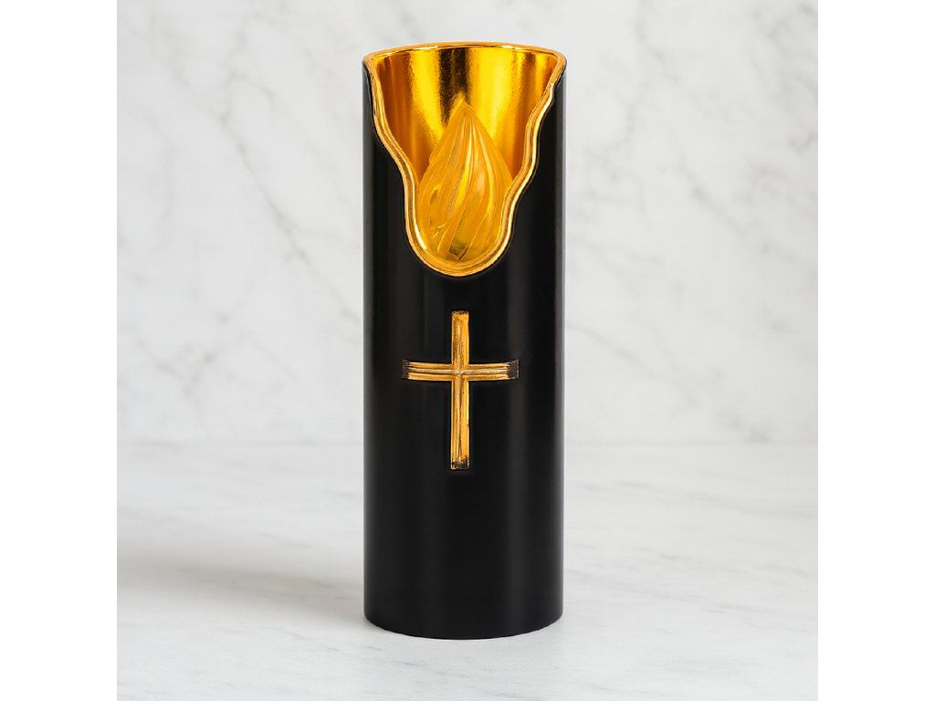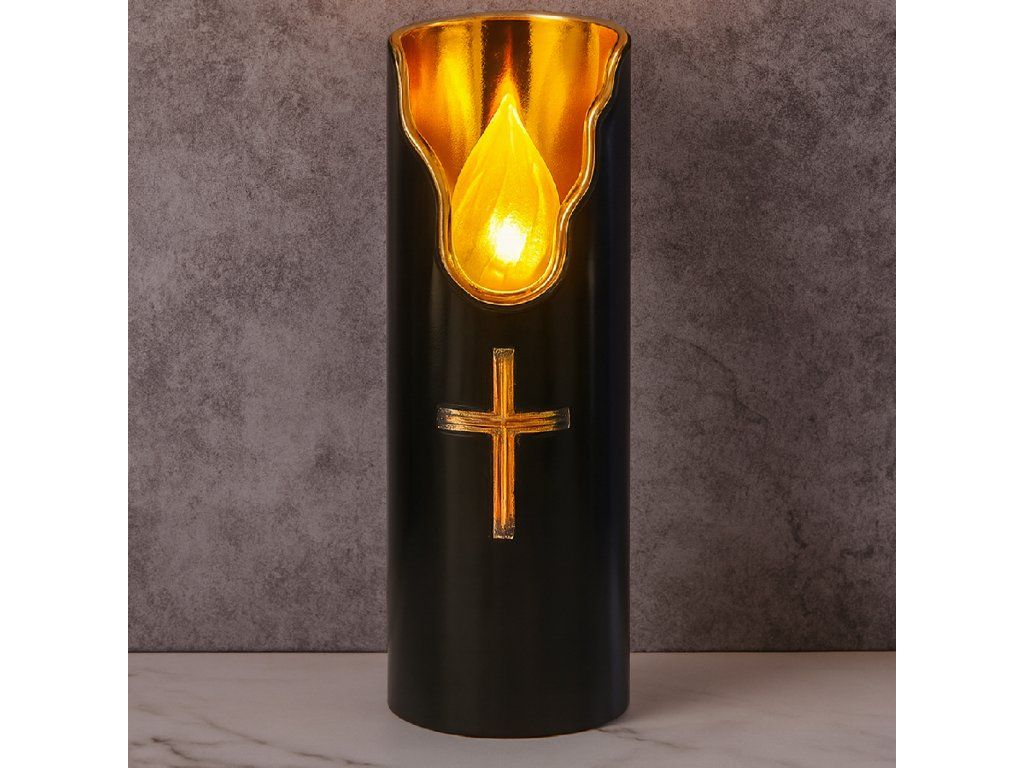 Elegantní vzhled - černý matný povrch s ozdobným křížem se ideálně hodí do každé svíčky.