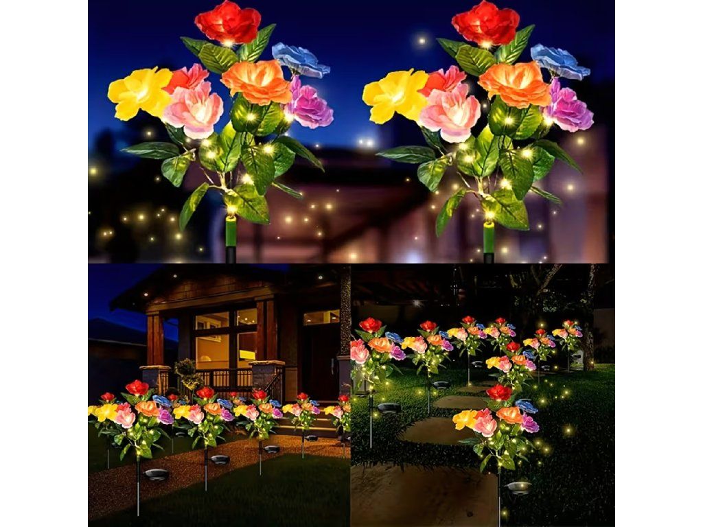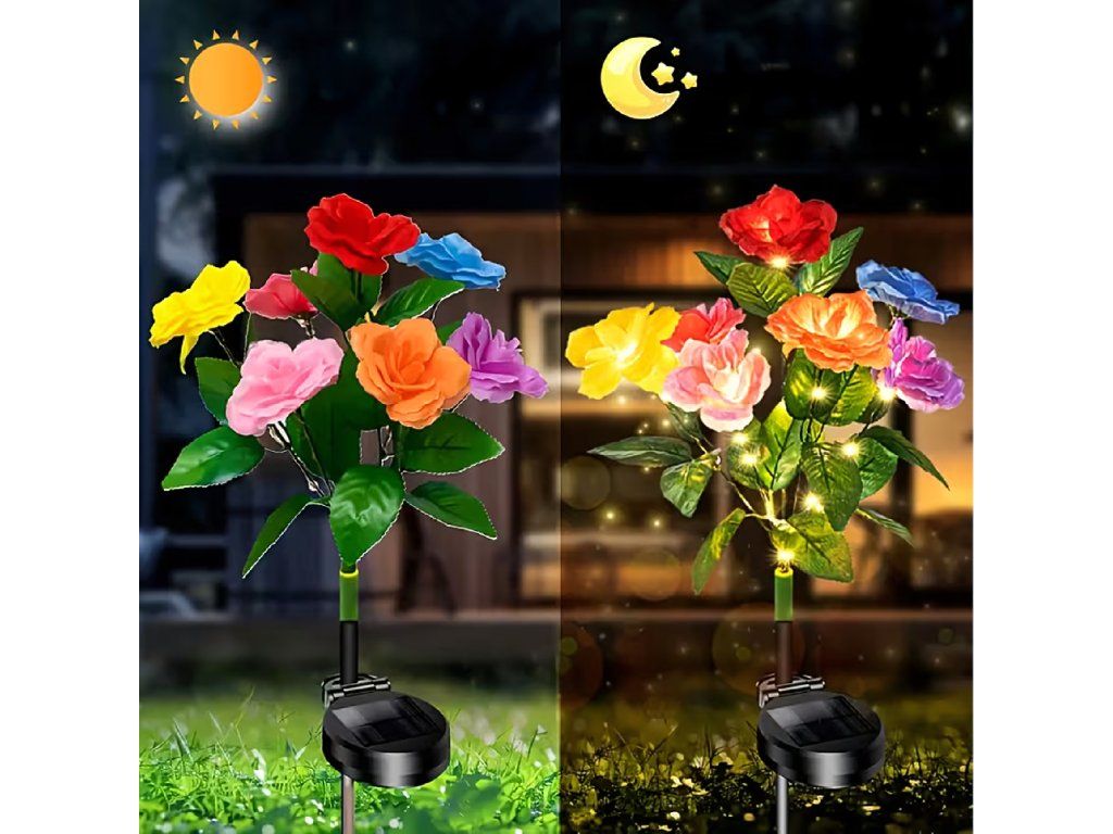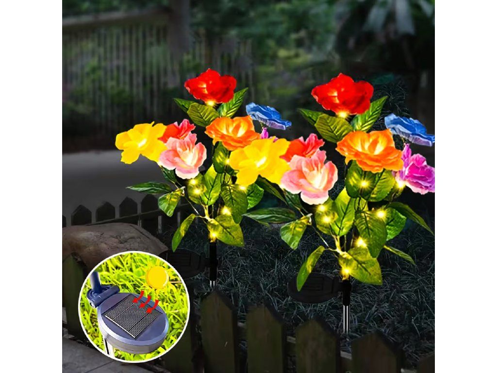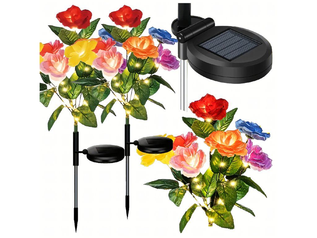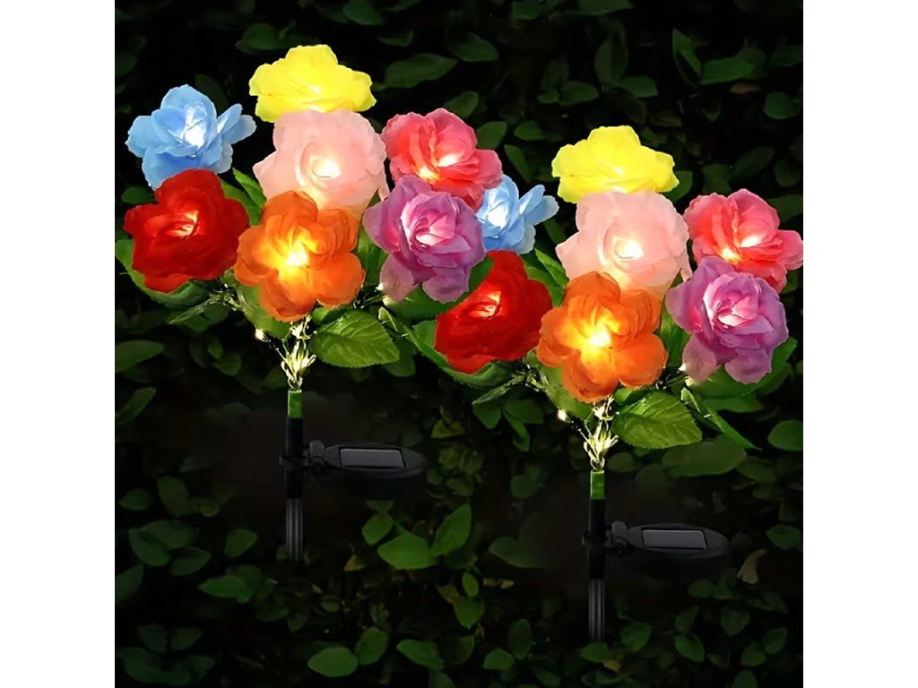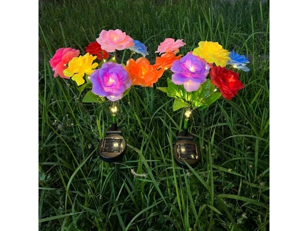 2 x solární zahradní lampa do země, růže, dekorace, solární květiny, LED