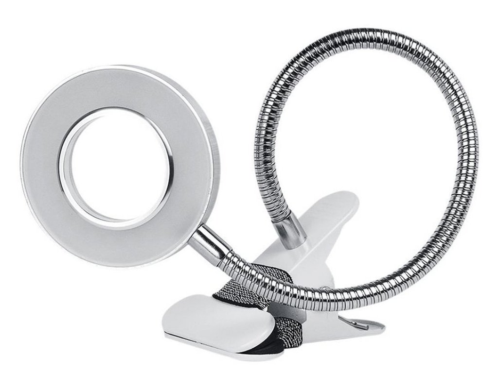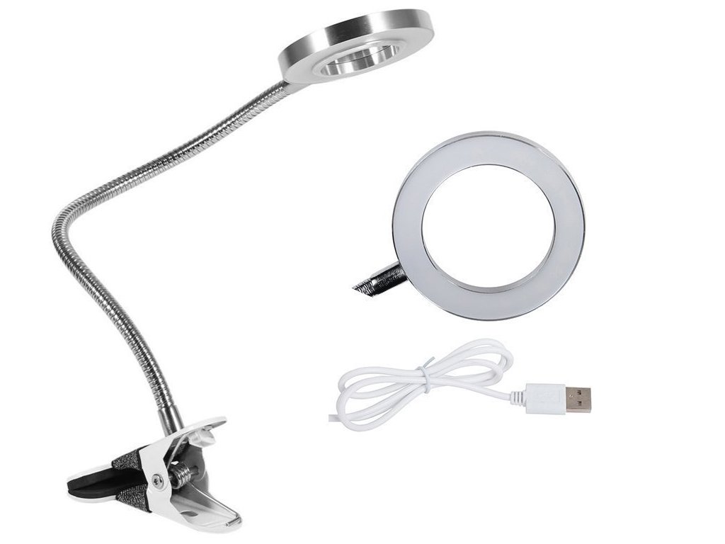24 LED stolní lampa s klipem na stůl, kosmetická lampa - stříbrná