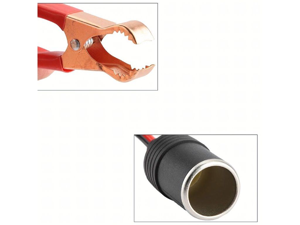 Adaptér do zapalovače 12V/24V s krokodílky – kompaktní a univerzální řešení pro rychlé připojení čerpadel, chladniček, nabíječek a dalších zařízení v autě, karavanu nebo kamionu – vždy připraven k použití na cestách i v terénu. ⚡