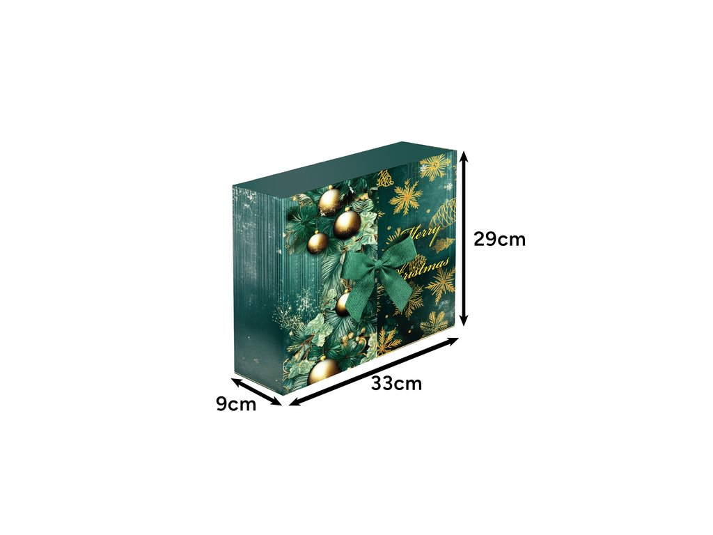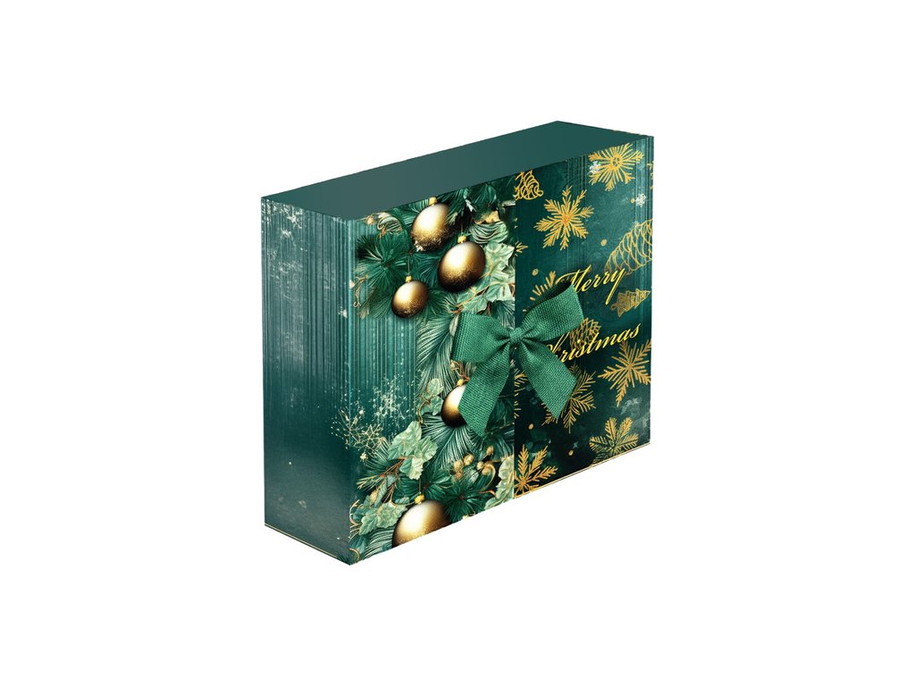 - vysoká kvalita a elegantní design - vyrobeno z tlusté, laminované lepenky, zdobené elegantní stuhou a jemnými zelenými a zlatými tóny – dar sám o sobě