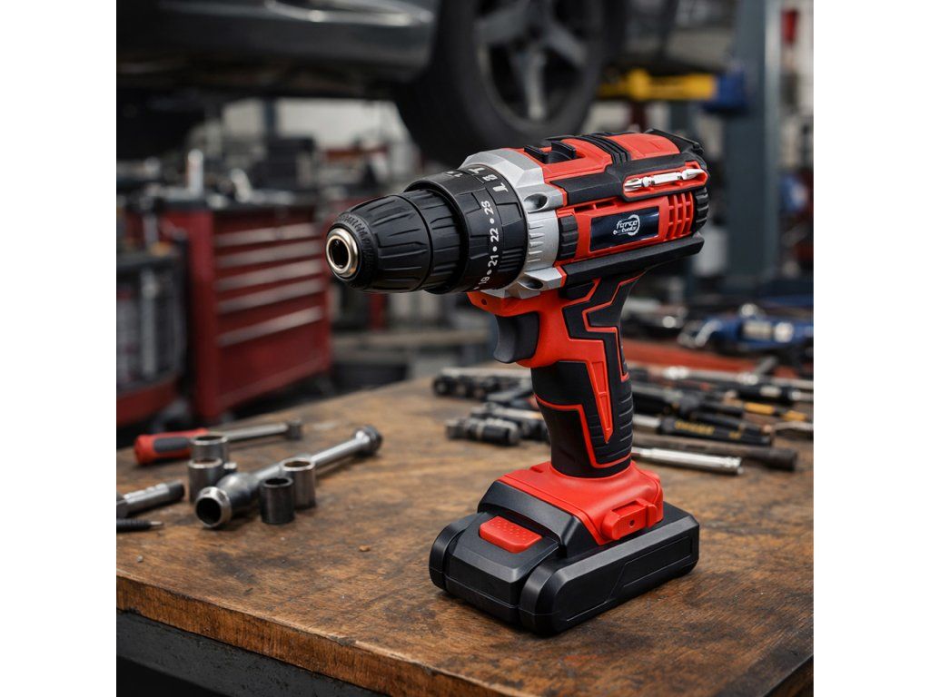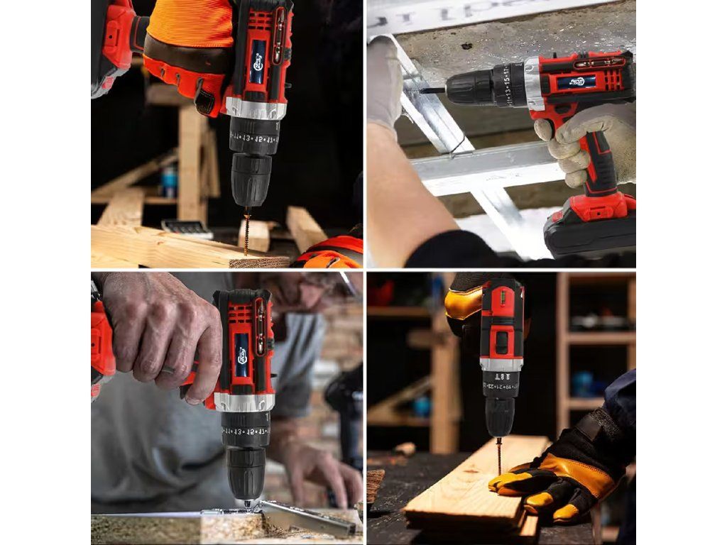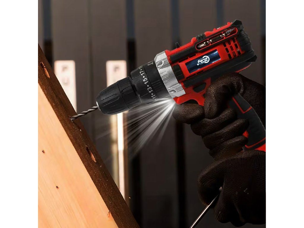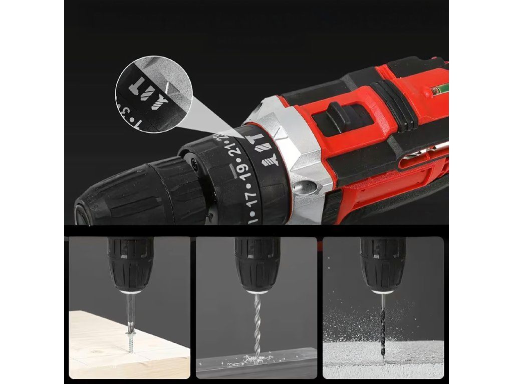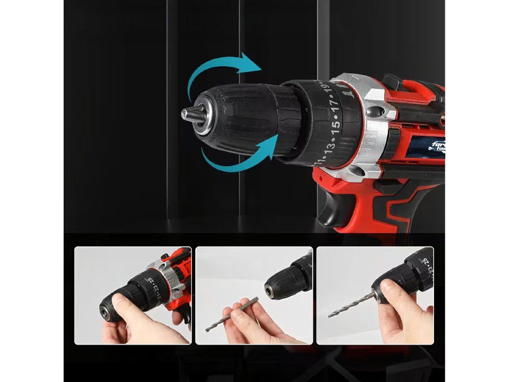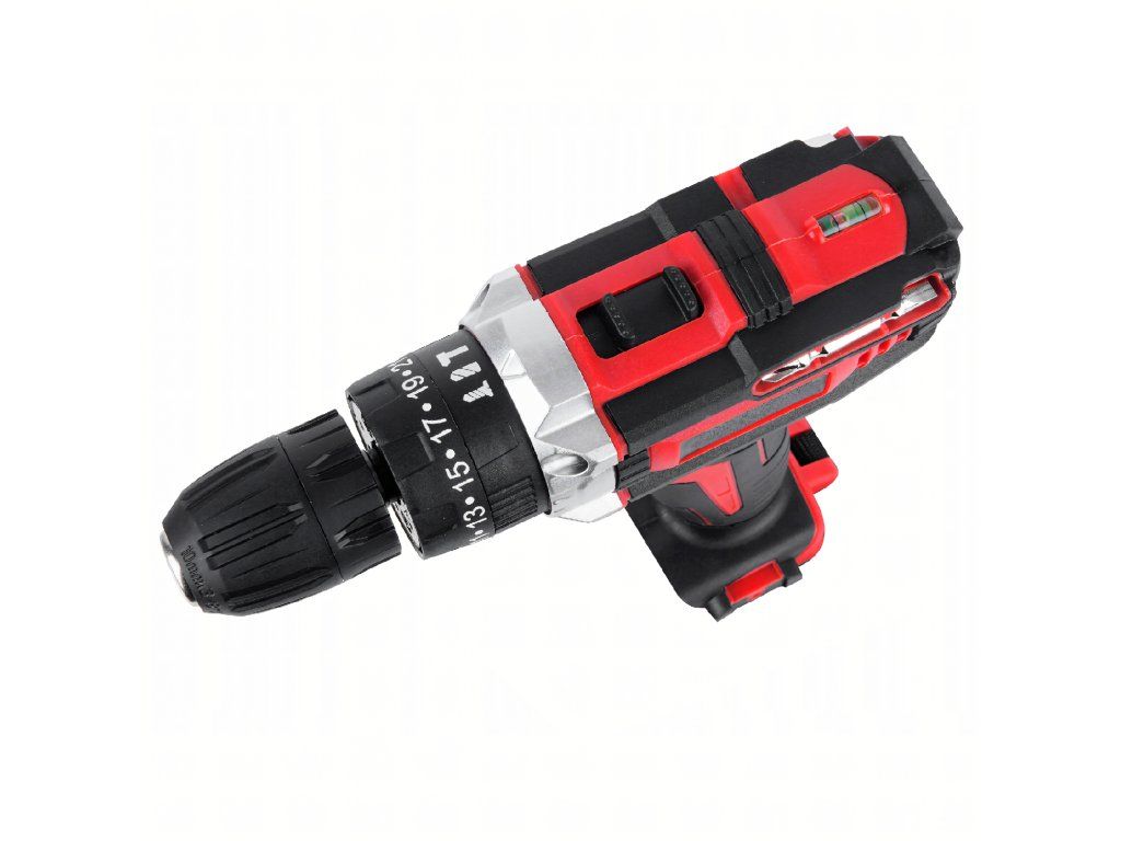Akumulátorová vrtačka a šroubovák, kufr, 2x akumulátor 18 V, LED + příslušenství