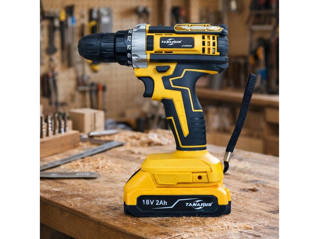 Akumulátorová vrtačka/šroubovák, kufřík, 2x akumulátor 18 V 2 Ah, LED + příslušenství