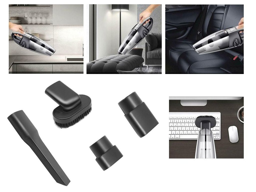 Vysavač je vybaven výkonnou dobíjecí baterií, která se nabíjí pomocí kabelu USB . Součástí balení jsou dvě hubice pro snadné čištění.