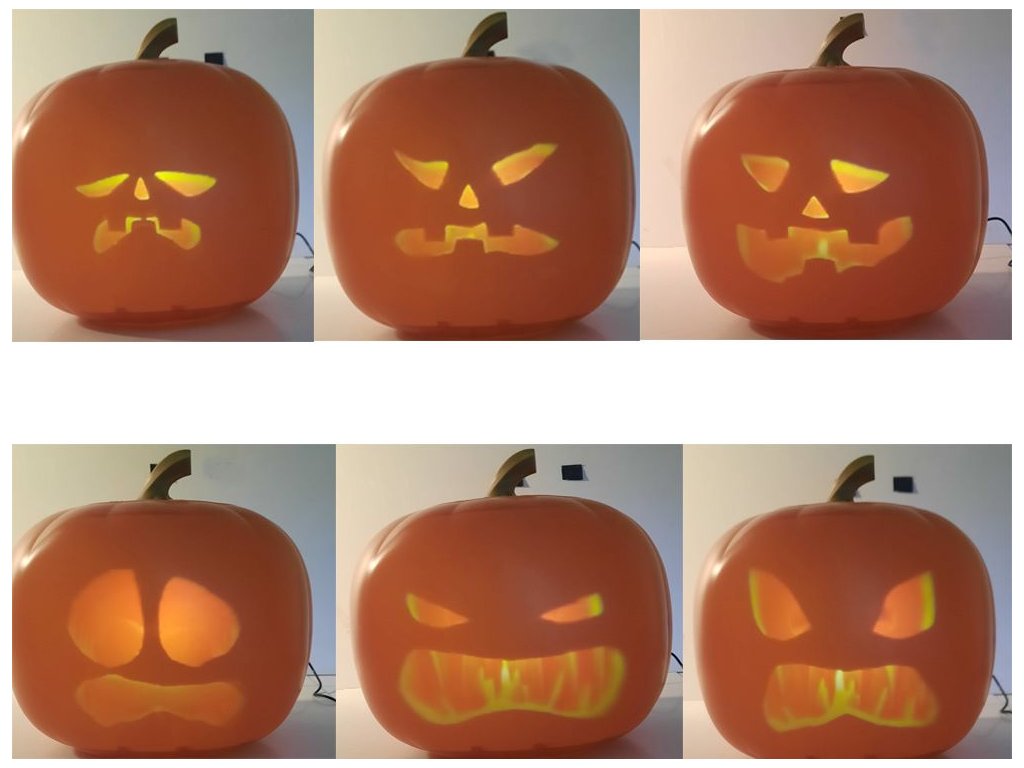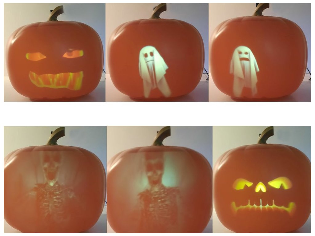 Projektor zobrazuje na přední straně dýně 14 různých animací ; jedná se především o různé obličeje, někdy legrační a někdy více či méně hrozivé, a také tanec duchů a kostlivců.
