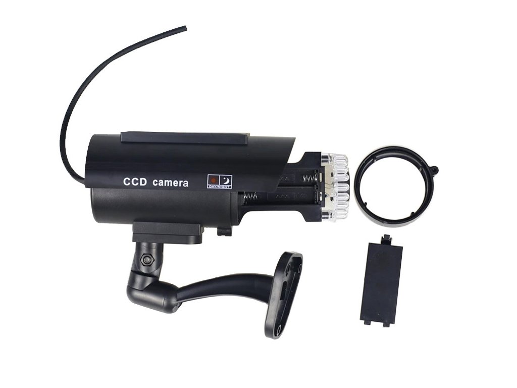 Atrapa kamery je vysoce kvalitní imitací skutečné monitorovací kamery CCTV. Blikající červená dioda vytváří dojem 24hodinového monitorování.