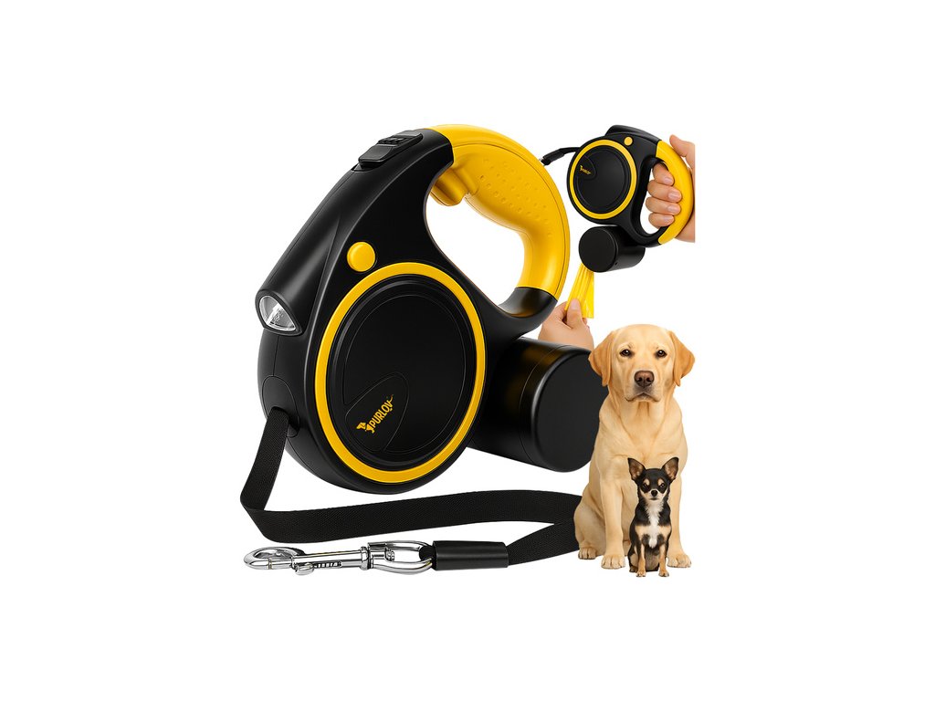 Automatické vodítko pro psy 10 - 25 kg s LED svítilnou, zamykací páska 5m