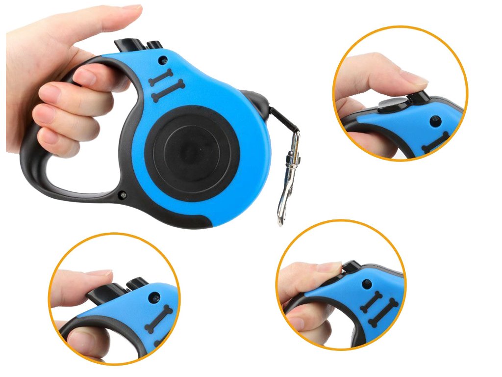Automatické vodítko pro psy a kočky, blokovací, 5m 15kg, modré