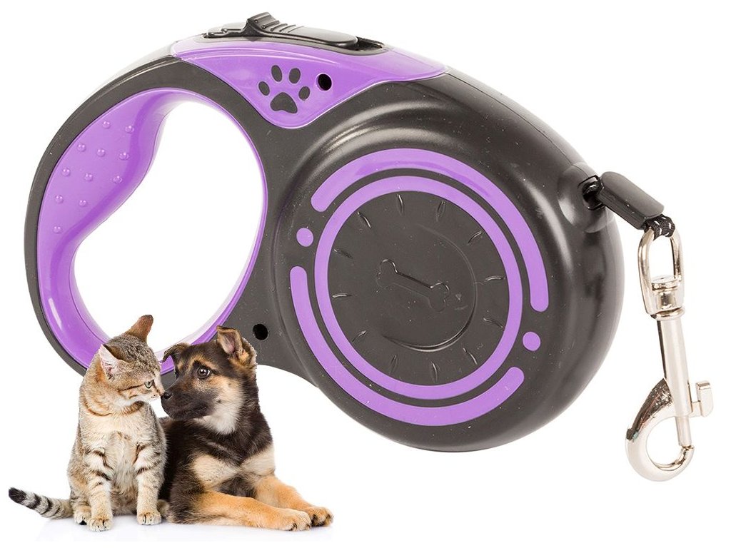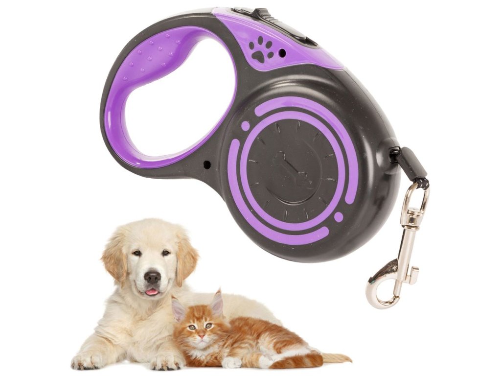 Automatické vodítko pro psy s blokátorem,5m, 15kg, fialová