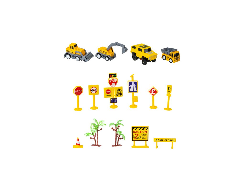 - Realistická hra: sada obsahuje nákladní automobily, bagry, válce a jeřáby – stejně jako na skutečném staveništi.