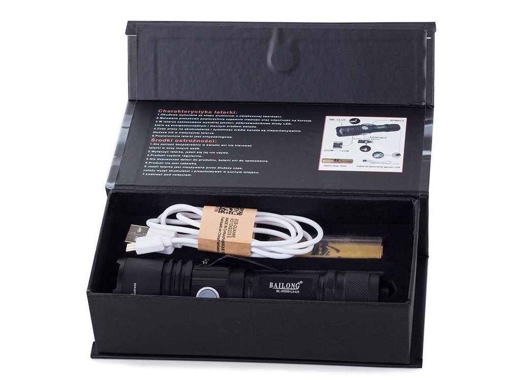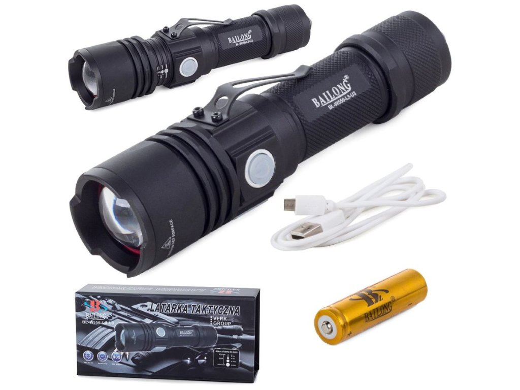 Bailong Cree LED XM-L3-U3 USB taktická svítilna