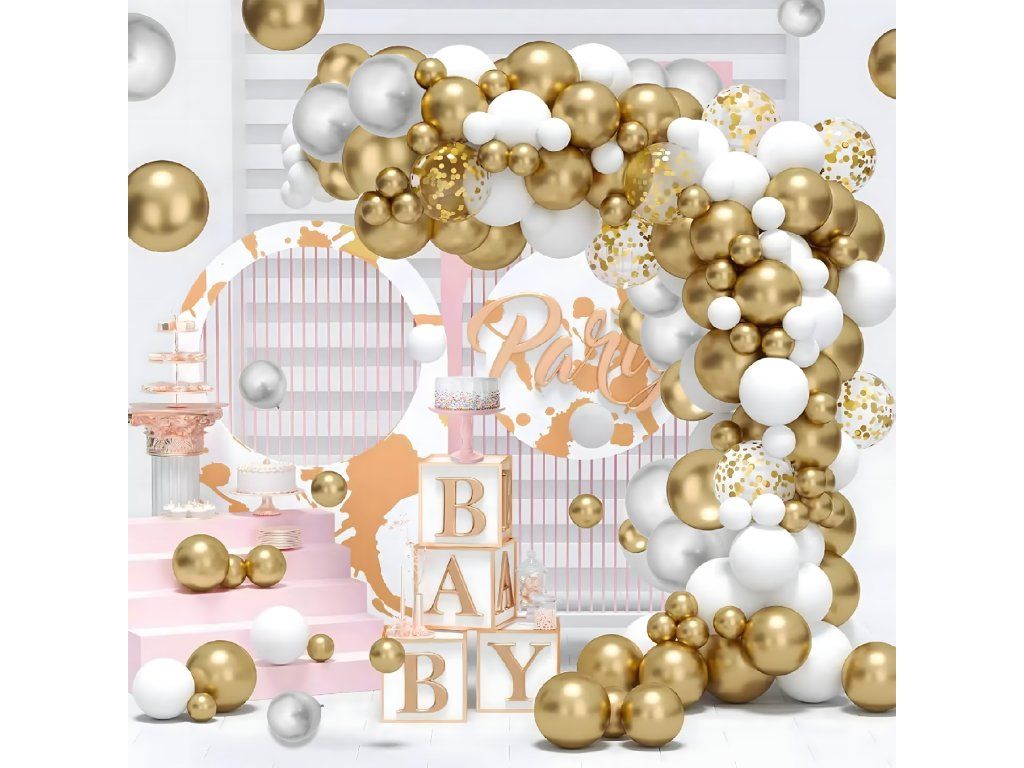 Balónková girlanda Sada balónků na narozeniny, svatbu, zlatá, bílá, 110 kusů