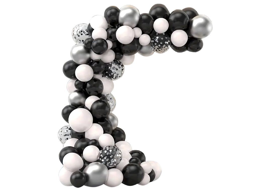 Dodávejte své akci eleganci! Vyberte si černobílou a stříbrnou balónkovou girlandu se 107 prvky a ohromte hosty výjimečnou dekorací.