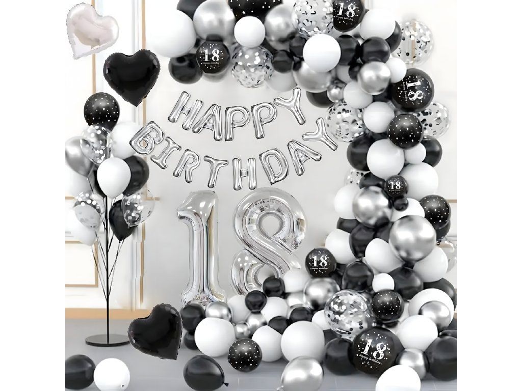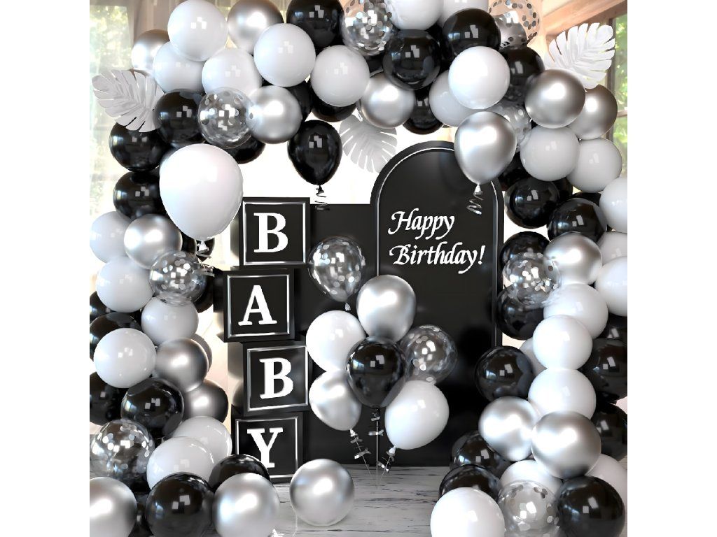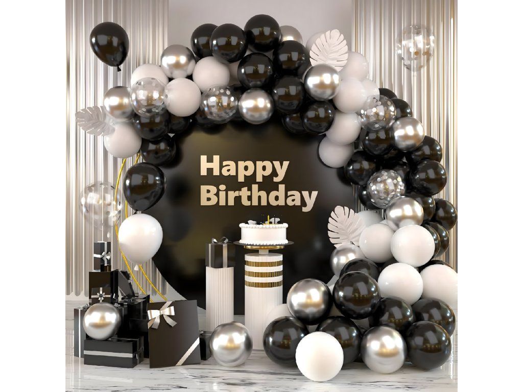 Balónková girlanda Sada balónků na narozeniny Černá Stříbrná Bílá 107 ks