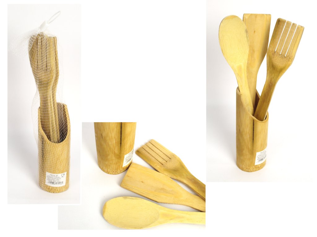 Bambusové kuchyňské náčiní v nádobě 28 cm, sada 4 ks.