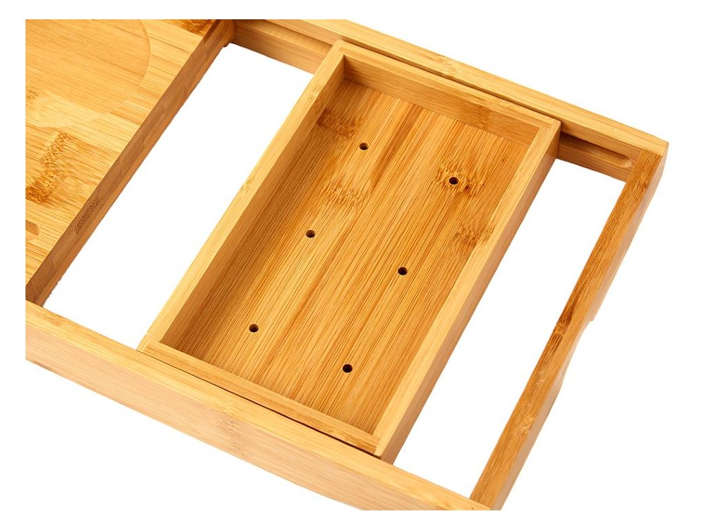 Bambusový rozkládací podnos na vanu, nastavitelná polička na vanu