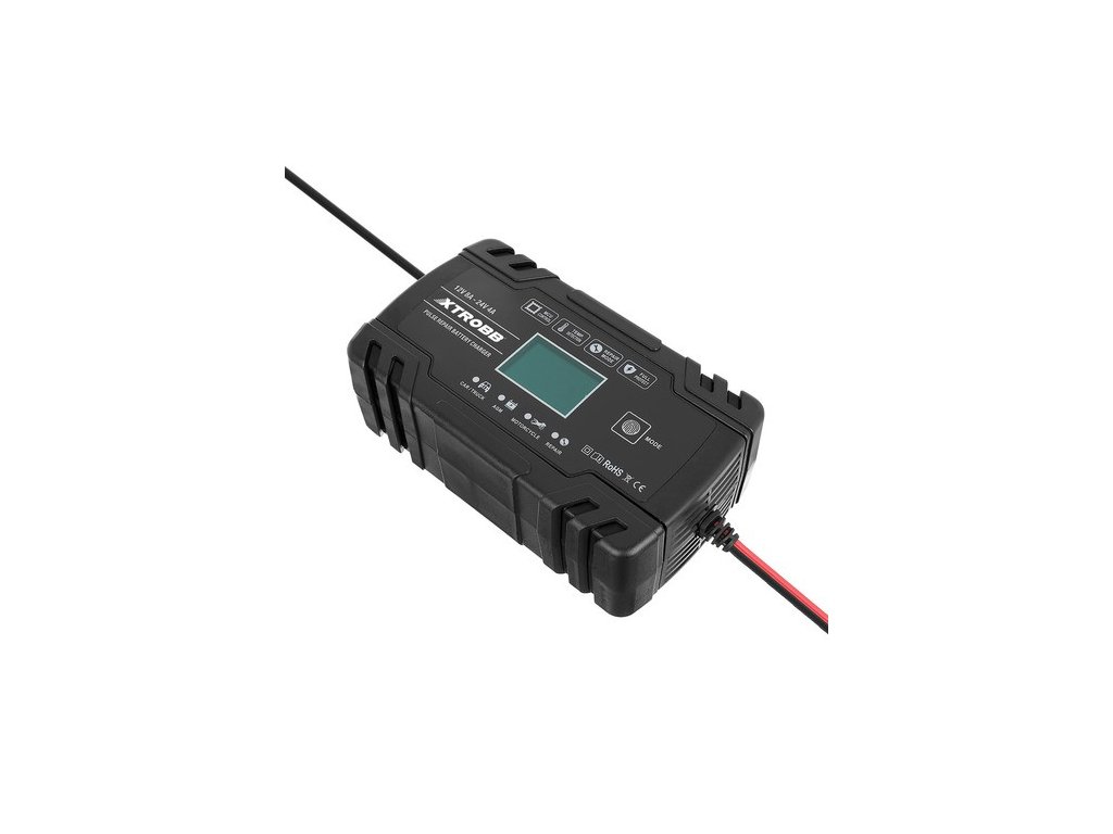 Profesionální zařízení pro nabíjení baterií v autech, motocyklech, sekačkách a motorových člunech. Je univerzální a moderní usměrňovač 12/24V, který umožňuje nabíjet olověné akumulátory. Jeho použití je extrémně snadné, takže si každý může snadno sám nabít napájecí zařízení vozidla. Má intuitivní dotykový displej a LCD displej, který přehledně zobrazuje parametry.