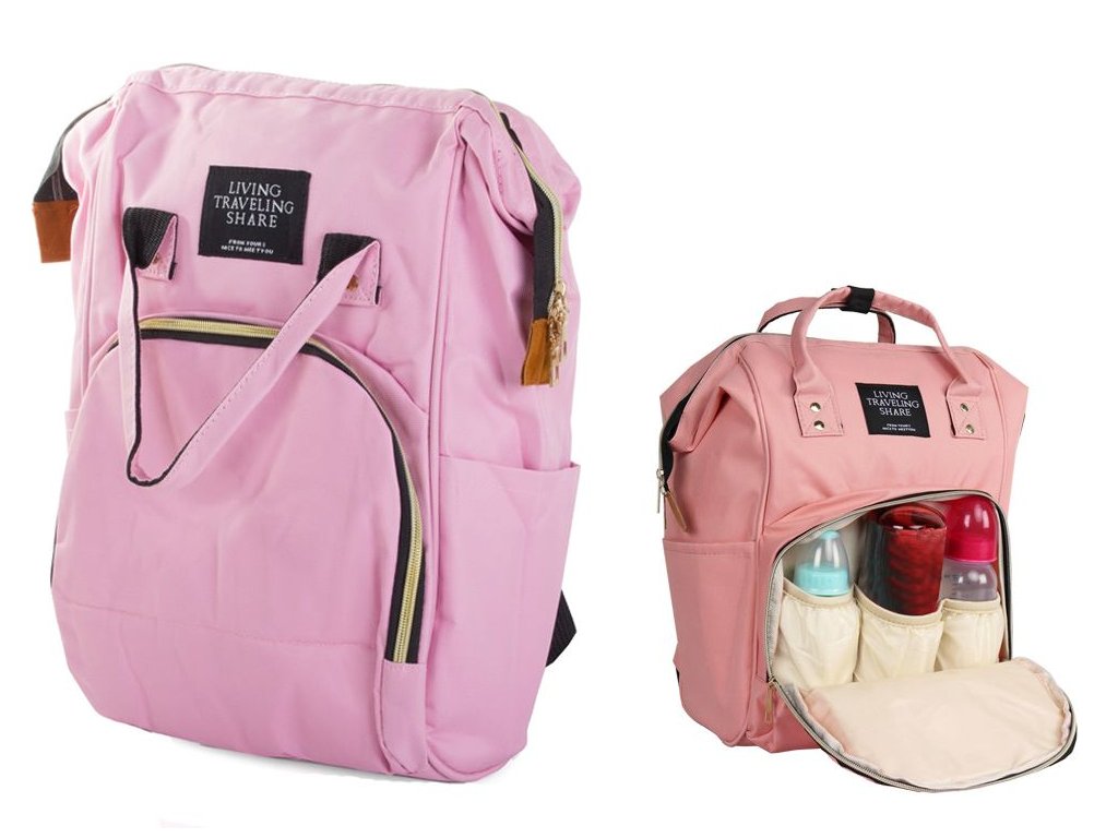 Batoh, organizér, taška do kočárku, taška pro maminku 3v1 - růžová