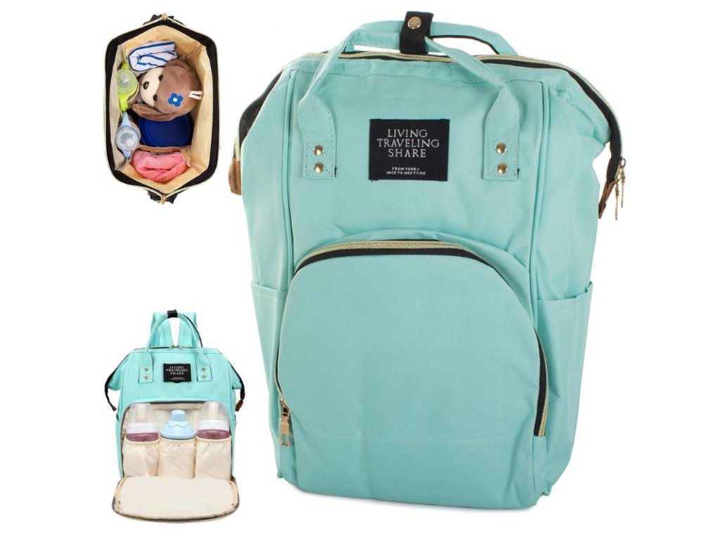 Batoh lze využít i jako příruční tašku . Můžete jej také připevnit na madlo kočárku . Má pevná záda a nastavitelná ramínka . Je vyrobena z tkaniny odolné proti vlhkosti.