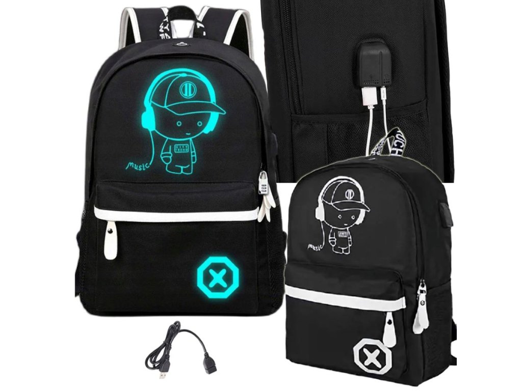 Batoh do školy, reflexní, USB svítící, hudba, 40 cm x 32 cm x 15 cm