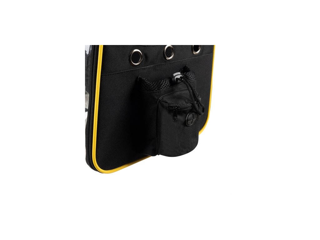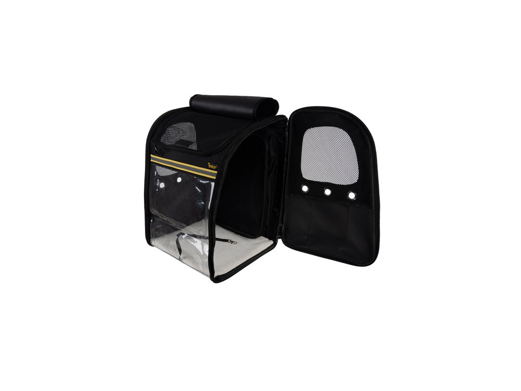 - VYZTUŽENÁ - taška je vyrobena z pevného materiálu, který je po stranách poměrně měkký a stabilní, a má dodatečné zpevnění na spodní i horní straně měkký vložka . Přední strana batohu je z průhledné silné fólie. Domácí mazlíček tak může pozorovat, co se děje venku, a během přepravy necítí žádné nepohodlí.