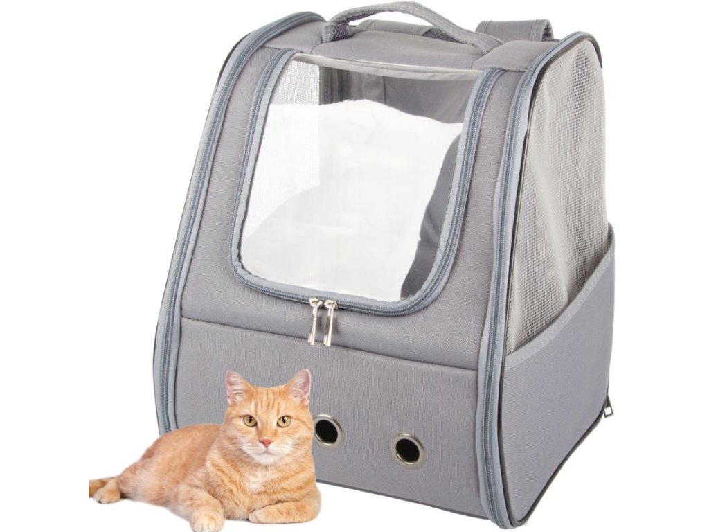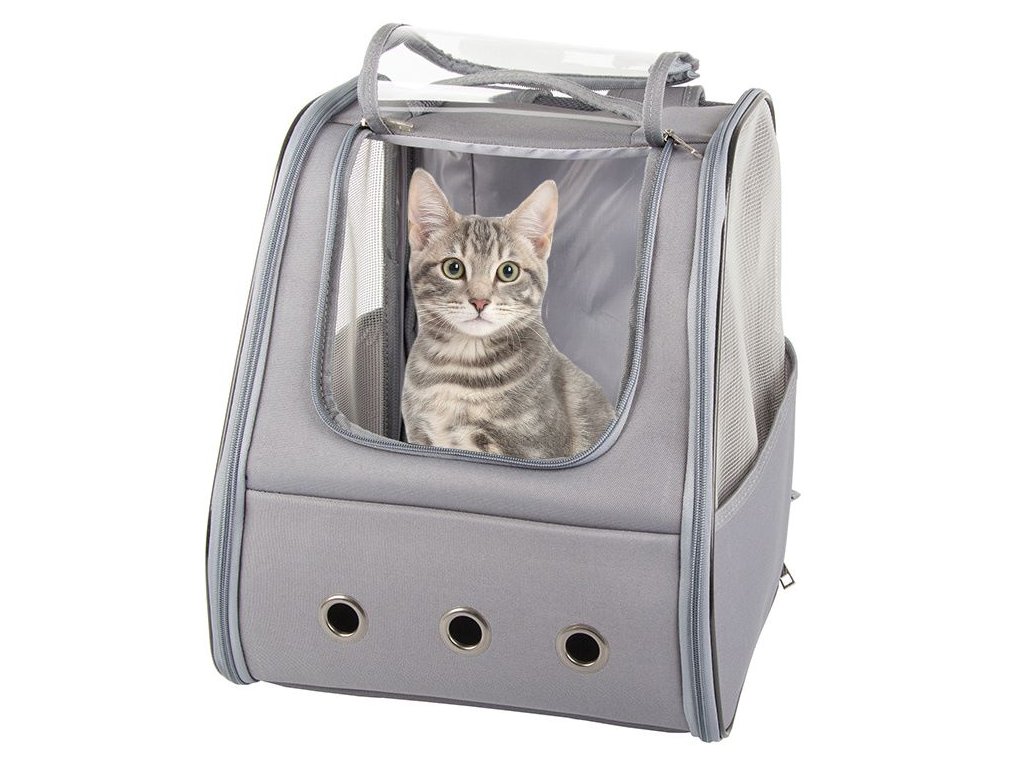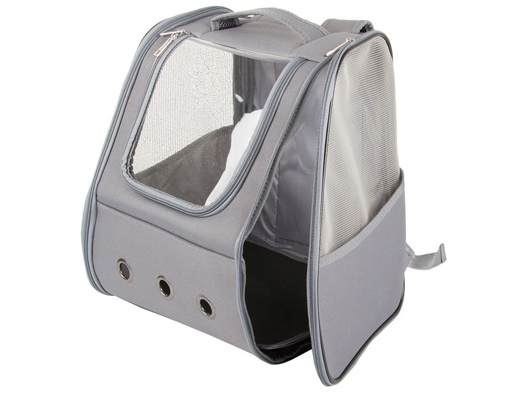 Batoh pro kočku, psa, králíka s oknem, zadní větrání, šedá