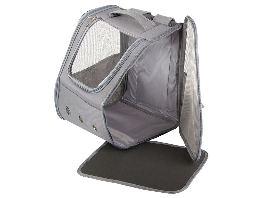 Batoh se otevírá ze dvou stran, má dvojitá dvířka a další průhlednou klopu. Ta umožňuje zvířeti vyhlížet z okna. Celý batoh je dobře větraný, po stranách má síťku a na přední straně batohu jsou 3 otvory.