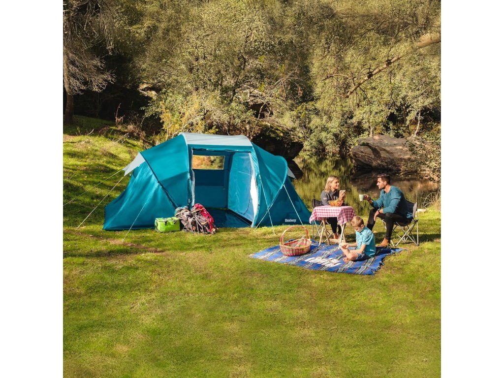 Rodinné výlety – prostorný stan pro 4 osoby, perfektní pro společné výlety.