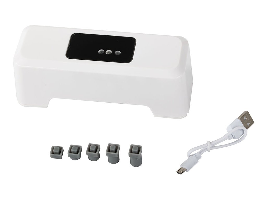Senzor má výsuvné nožičky, takže po přilepení na povrch toalety lze zařízení snadno sejmout, když je potřeba ho nabít nebo vypnout.
