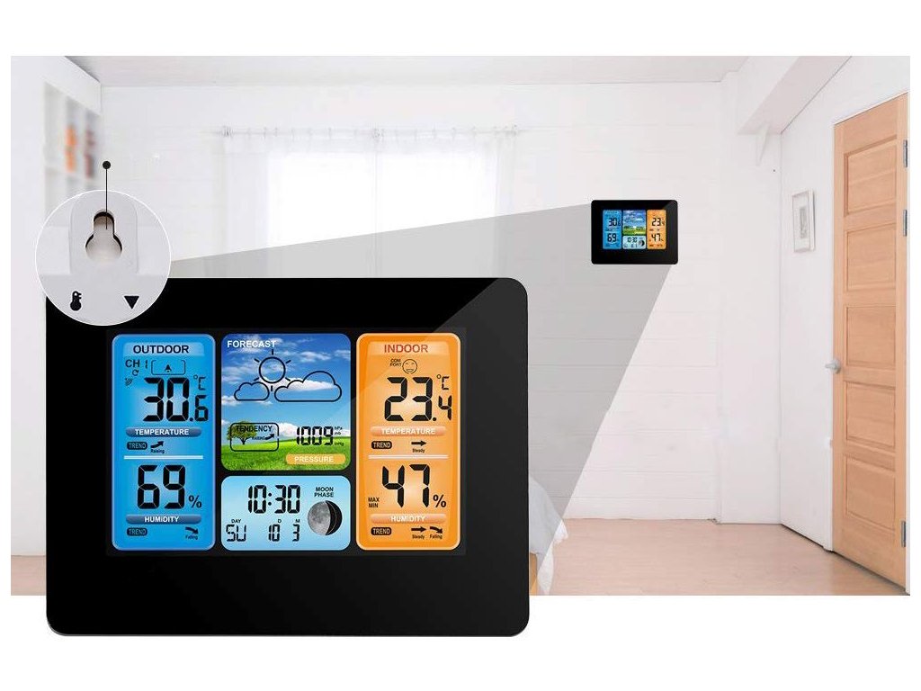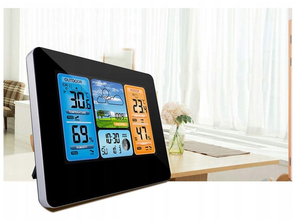 Moderní meteostanice se stylovým designem, který dokonale zapadne do prostoru každé místnosti. Lze ji umístit kamkoli na skříň, okenní parapet nebo stůl, případně ji lze zavěsit na zeď. Přístroj se bude hodit v mnoha domácnostech, protože je mimořádně funkční.