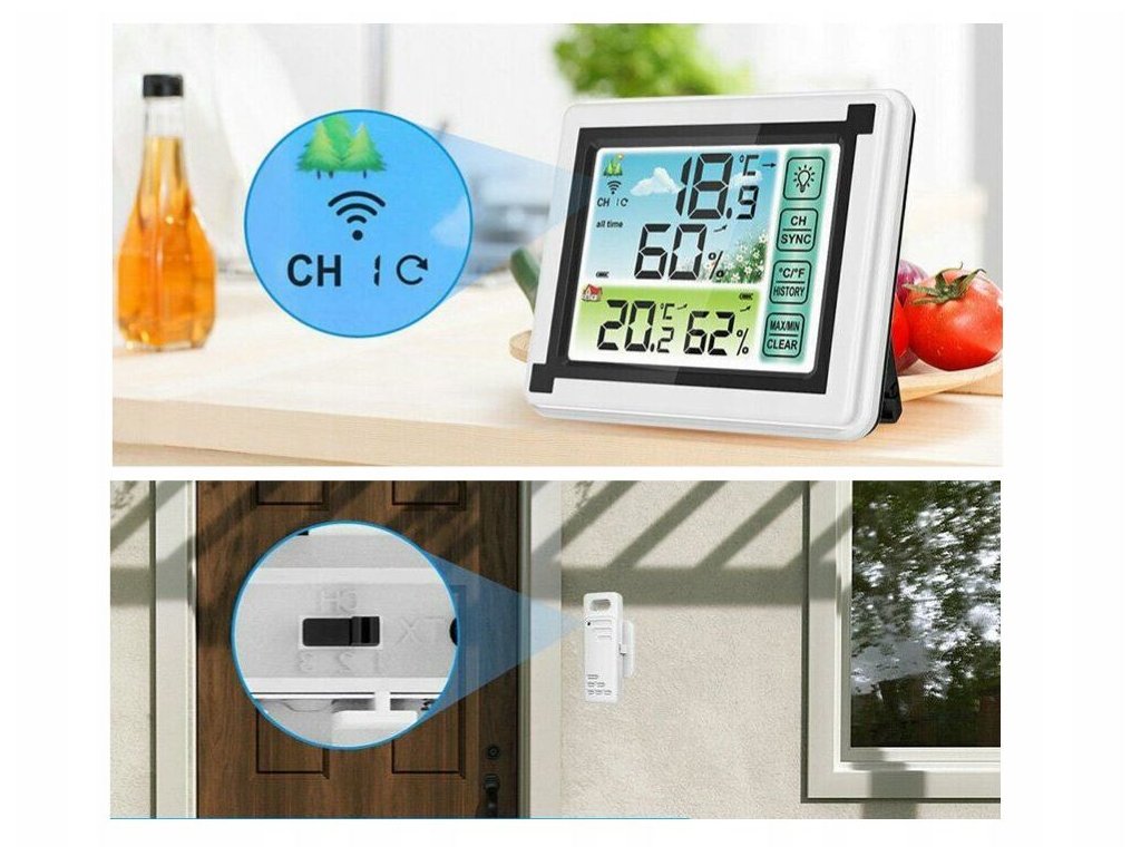 Výrobek nám ukáže aktuální teplotu a vlhkost (průběžně aktualizovanou) uvnitř i vně místnosti. Sada obsahuje externí senzor , jehož provozní dosah dosahuje až 60 metrů.