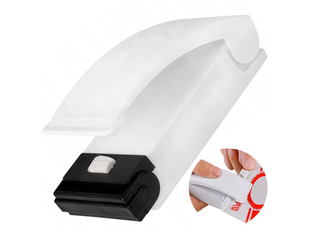 Kromě toho má zatavovač na zadní straně magnetickou destičku, takže jej můžete umístit například: na ledničku, abyste jej měli vždy po ruce. Má také speciální distanční rukojeť, která zabraňuje nechtěnému sevření těsniče. Před použitím ji jednoduše spustíte.