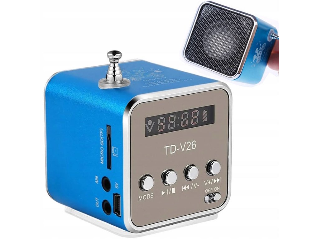 Bezdrátový reproduktor, přenosné mini rádio, bluetooth, modrá