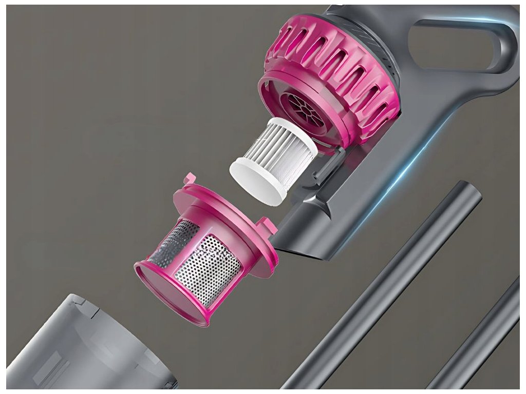 Moderní bezdrátový ruční vysavač 2v1 vám usnadní každodenní úklid. Díky výkonnému motoru (100 W) a sací síle 10 000 Pa efektivně odstraní prach, chlupy, drobky i nečistoty z podlah, koberců nebo čalounění.