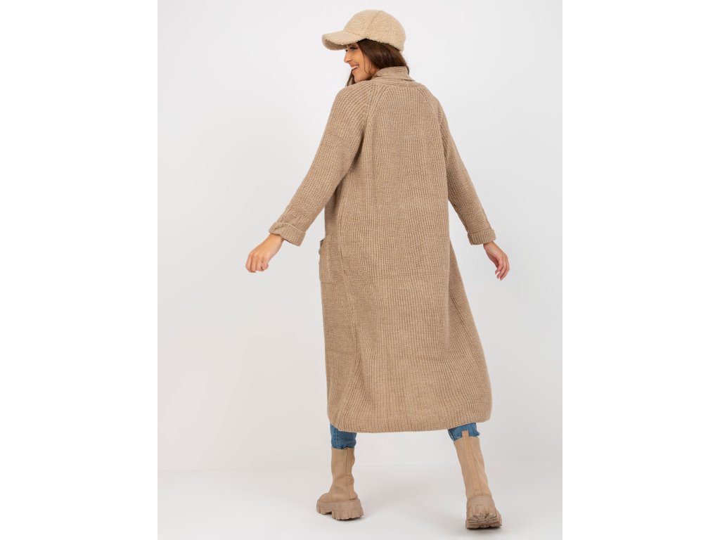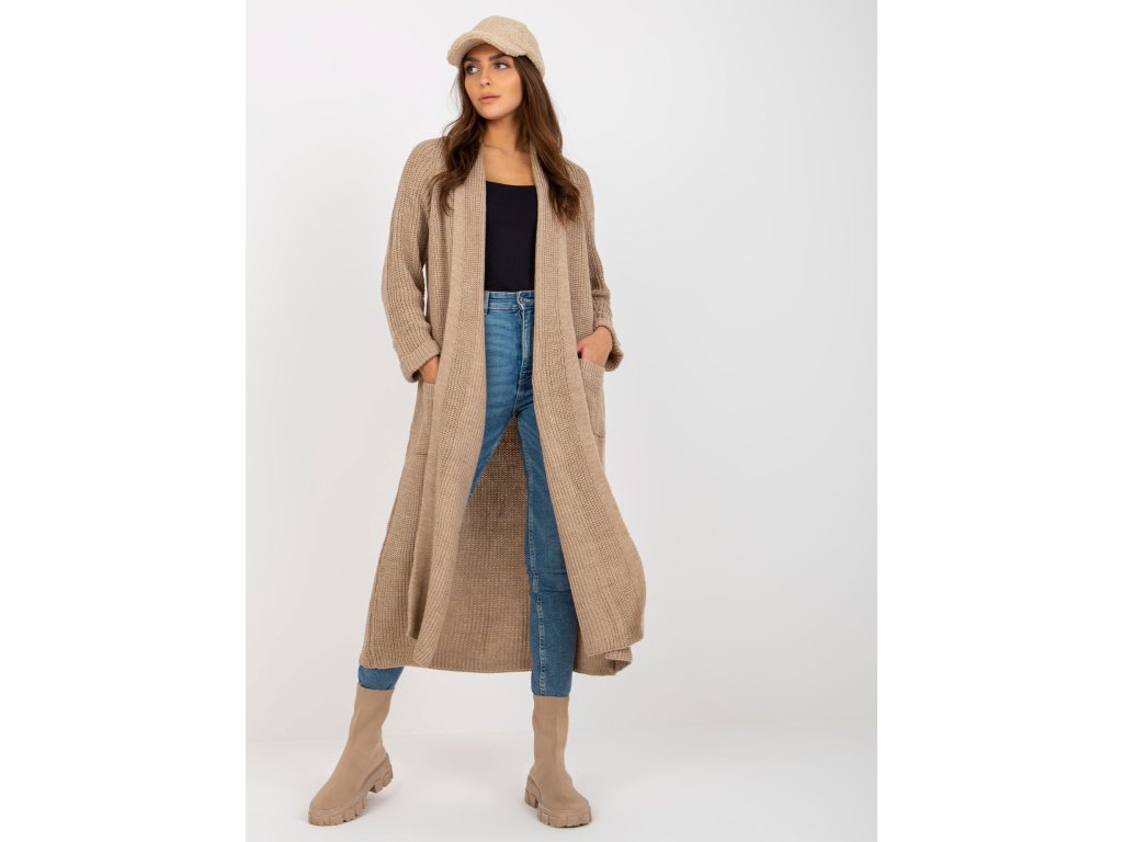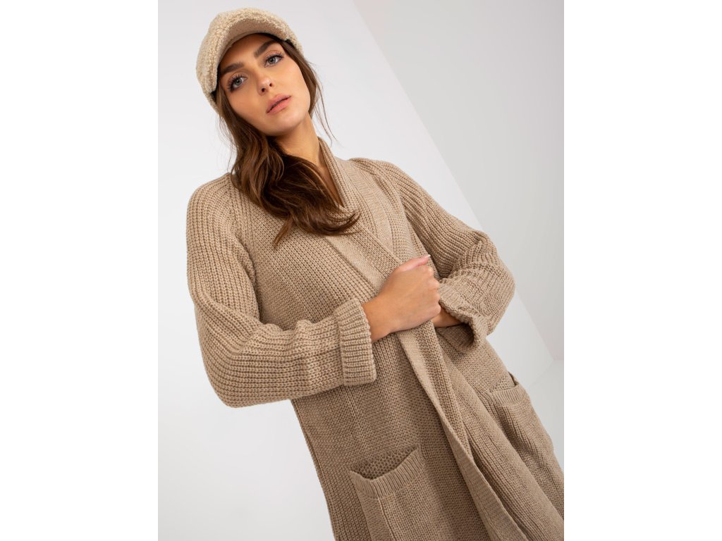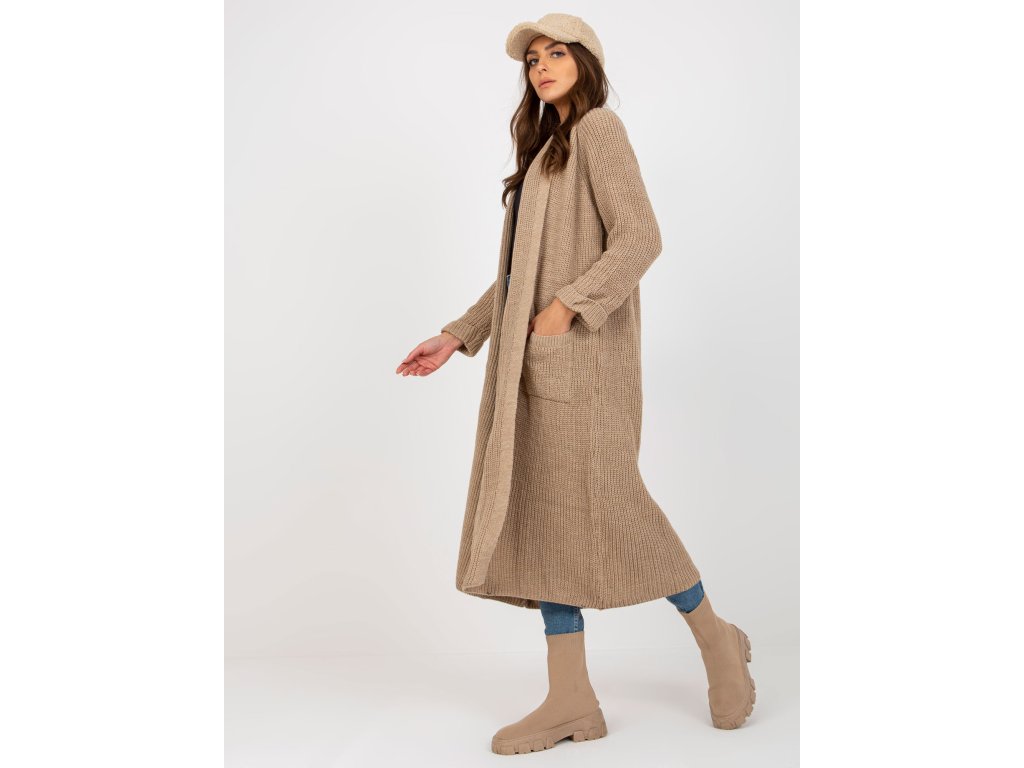 Rozměry kardiganu ve velikosti one size měřené na rovné ploše: šířka pod pažemi – 65 cm, celková délka – 112 cm, délka rukávů – 58 cm.