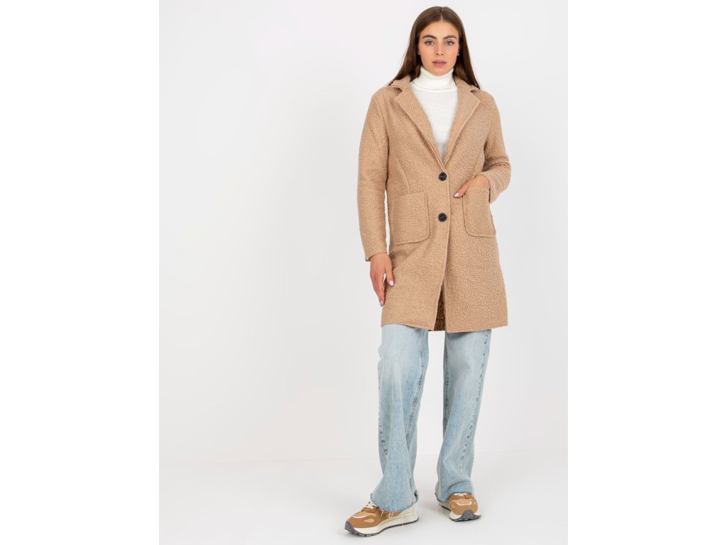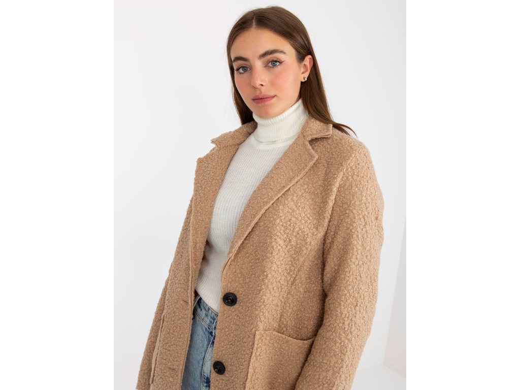 Béžový plyšový kabát se zapínáním na knoflíky OCH BELLA