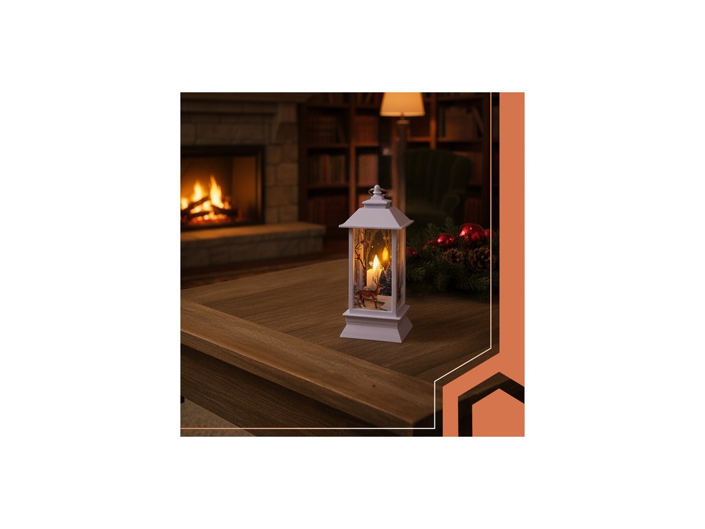 LED lucerna na baterie, vánoční lucerna, vánoční dekorace, bílá ozdoba