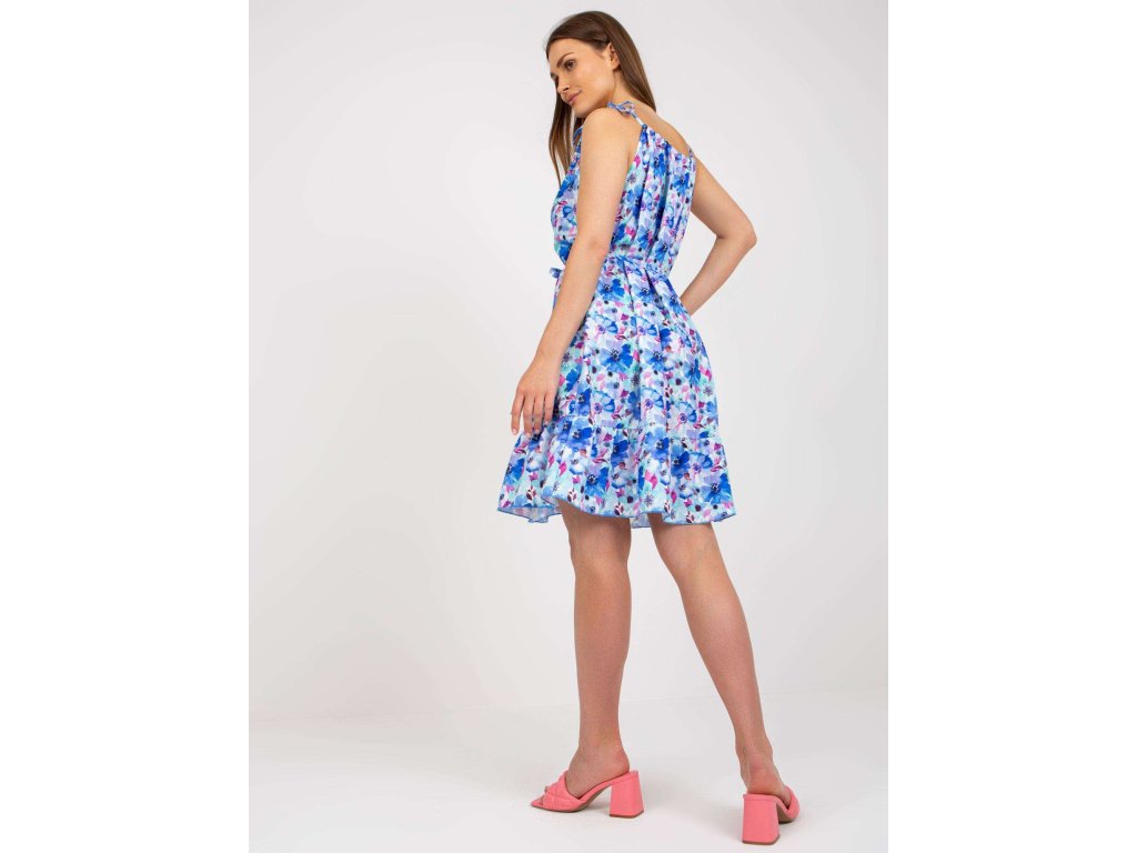 Bílé a modré šaty s volánkovými ramínky RUE PARIS.