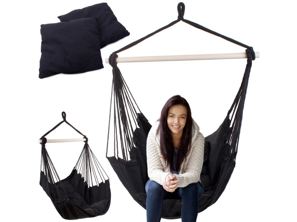Brazilské závěsné houpací křeslo + 2 polštáře, černé