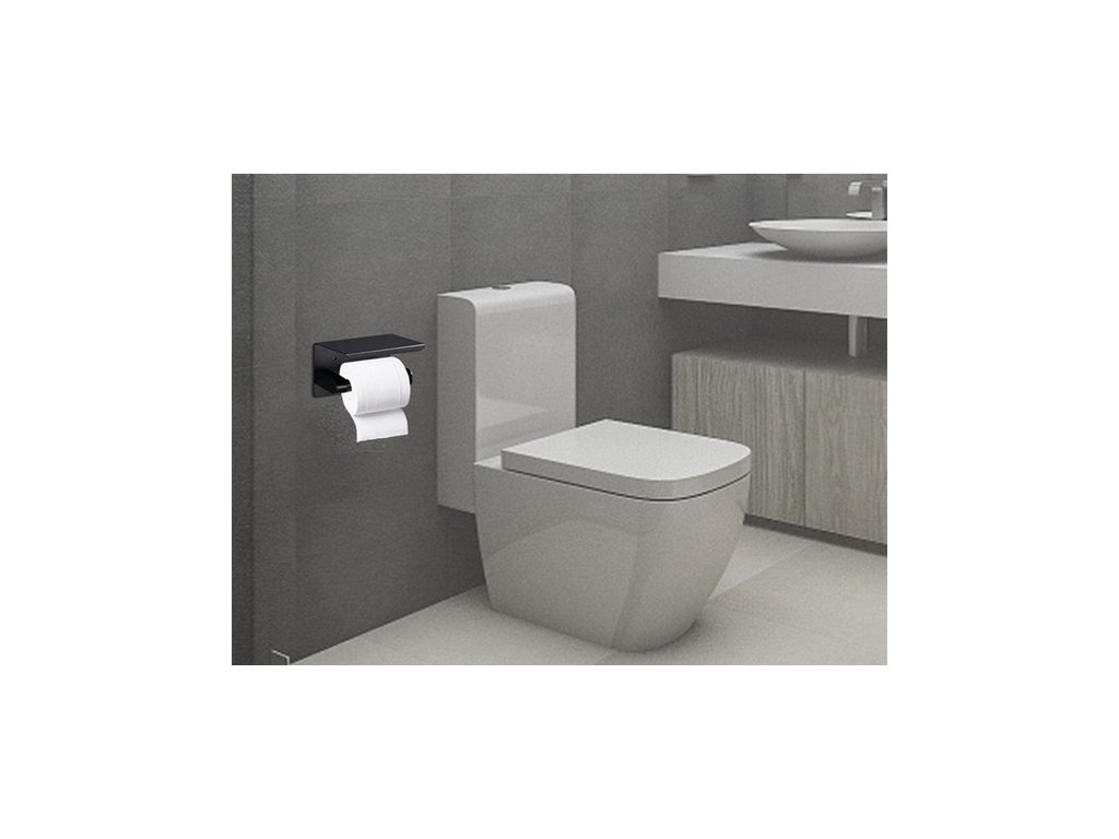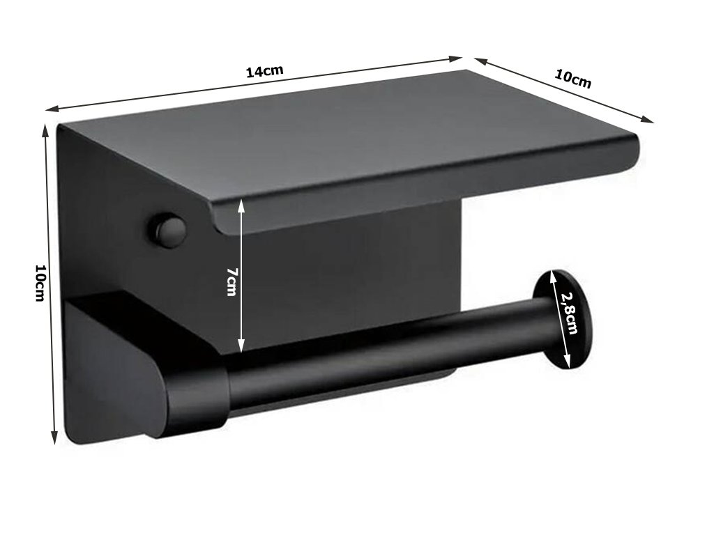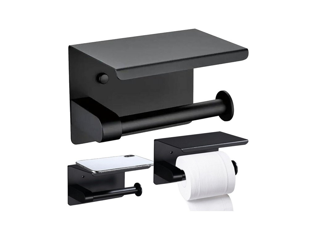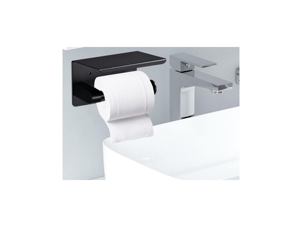 Praktický držák na WC papír s poličkou – elegantní černý doplněk do koupelny