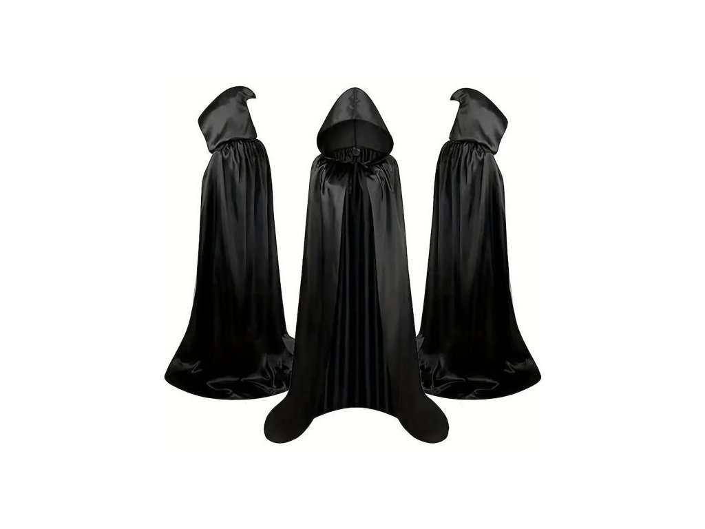 Proměň se během okamžiku v tajemnou postavu noci! Tento dlouhý černý plášť s kapucí je ideální doplněk pro Halloween, karneval, divadelní vystoupení i tematické párty. Lesklý saténový materiál působí elegantně, přitom je lehký a příjemný na nošení po celý večer.