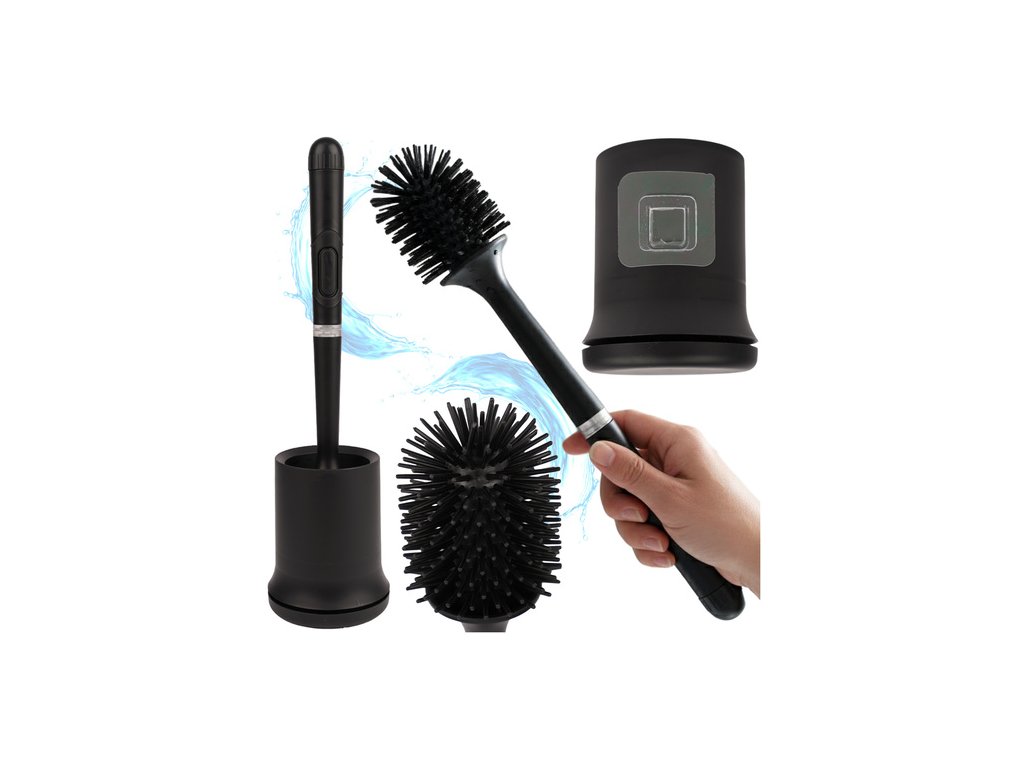 Kartáč s gumovou hlavicí a ventilovaným pouzdrem Zajišťuje efektivní čištění bez stříkance a nepříjemných pachů . Je vybaven dlouhou rukojetí a závěsnou nádobou a v sobě spojuje pohodlí, hygienu a estetiku v jednom praktickém doplňku do každé koupelny.