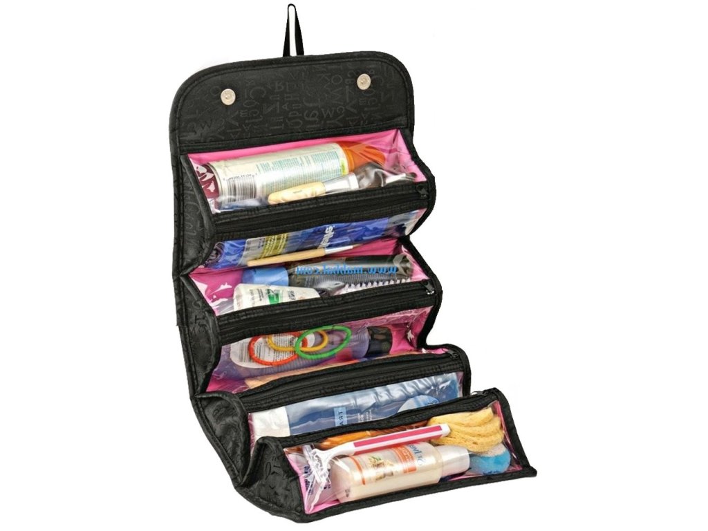 Cestovní organizér jistě pojme veškerou kosmetiku jako pudr, pastelky, rtěnky a další doplňky.