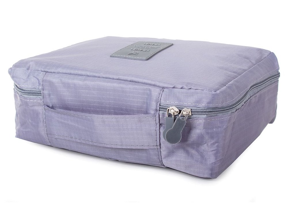 Organizér je velmi prostorný, má jednu přihrádku , jednu přihrádku se dvěma kapsami , připevňuje se suchým zipem , můžete jej odepnout a dodatečně zvětšit kapacitu kosmetické taštičky . Má také 2 kapsy na menší předměty. Ve složeném stavu zabírá velmi málo místa.