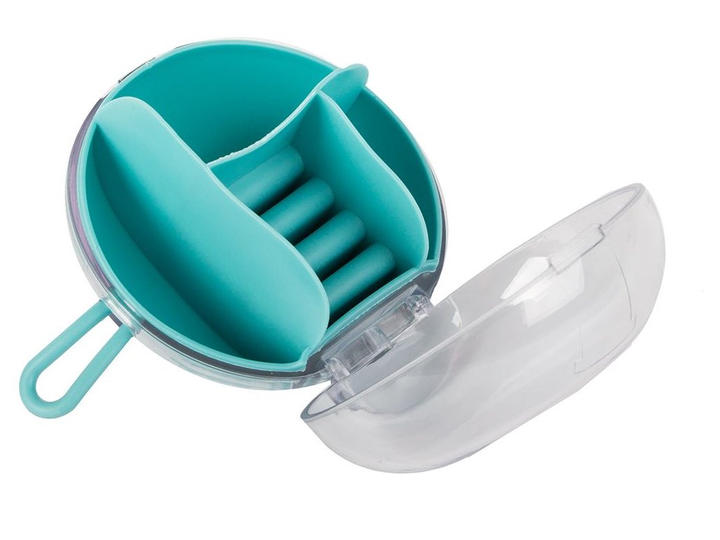 Organizér se skládá z mnoha funkčních prvků . Vnitřek krabičky lze vyjmout a použít samotnou průhlednou krabičku.