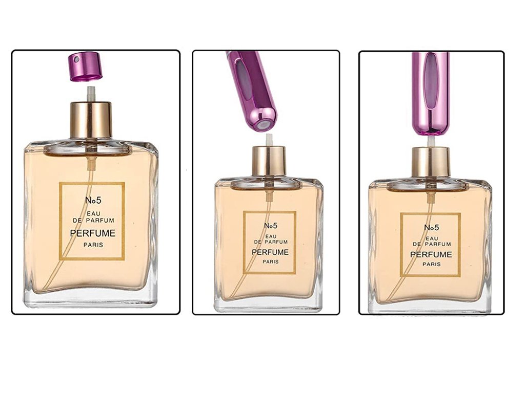 Vyrobeno z hliníku, zajišťuje, že se parfém během přepravy nerozbije. Zařízení je určeno pro opakované použití a lze jej mnohokrát naplnit parfémem.