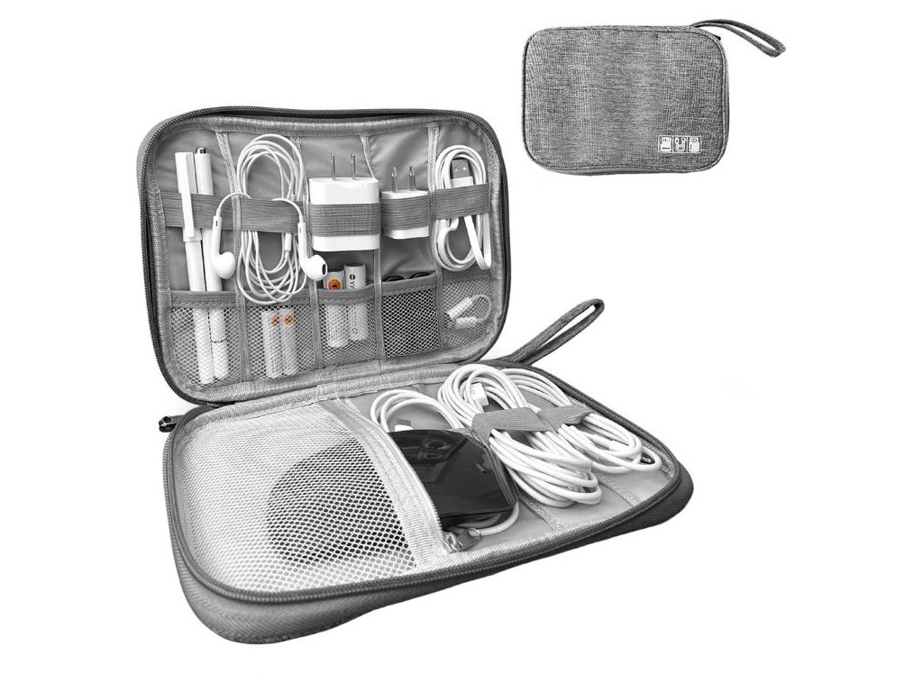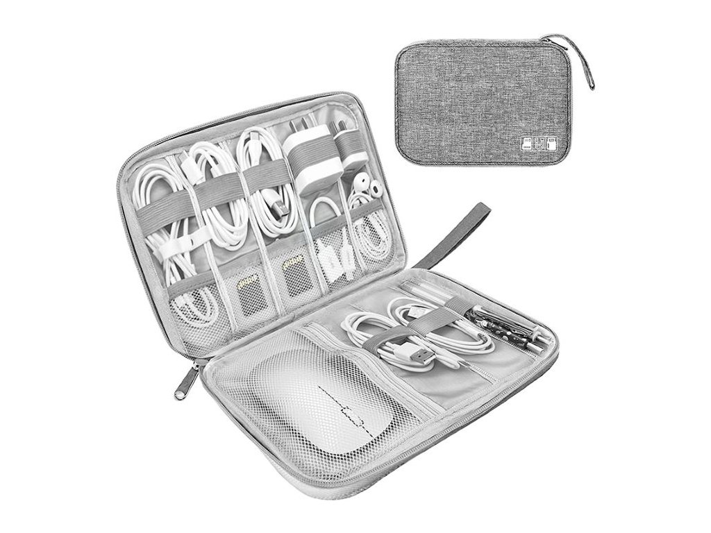Cestovní taška na kabely a nabíječky, cestovní organizér, pouzdro - šedá