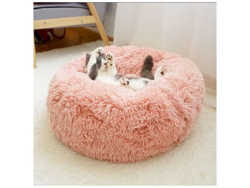 Chlupatý pelíšek pro kočky a psy, měkký, 50 cm, růžový