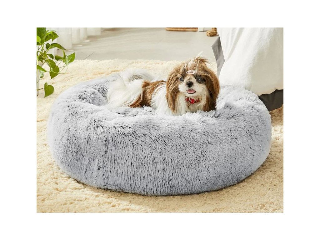 Chlupatý pelíšek pro kočky a psy, měkký, 80 cm, světle šedý