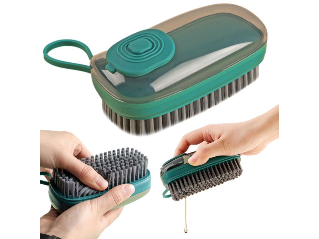 Kartáček s dávkovačem se skvěle hodí do každé domácnosti. Je určen na drhnutí hrnců a další . Pomůže vám snadno odstranit nečistoty, připáleniny apod. Díky dávkovači tekutin nebudeme mít přímý kontakt s chemikáliemi, což se bude hodit alergikům.
